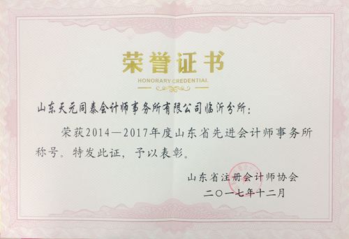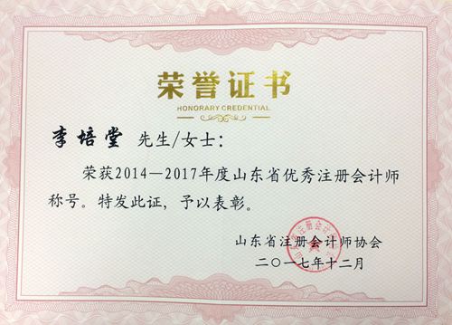 日前,山東省注冊會計師協會、山東省資產評估協會舉辦2014-2017年度山東省注冊會計師、資產評估行業先進典型評選。 我所獲得“2014-2017年度山東省先進會計師事務所”榮譽稱號,山東同泰資產評估有限公司獲得“2014-2017山東省先進資產評估機構”榮譽稱號。同時,李培堂獲得“2014-2017年度山東省優秀注冊會計師”稱號,杜征宇獲得“2014-2017年度山東省優秀資產評估師”稱號。