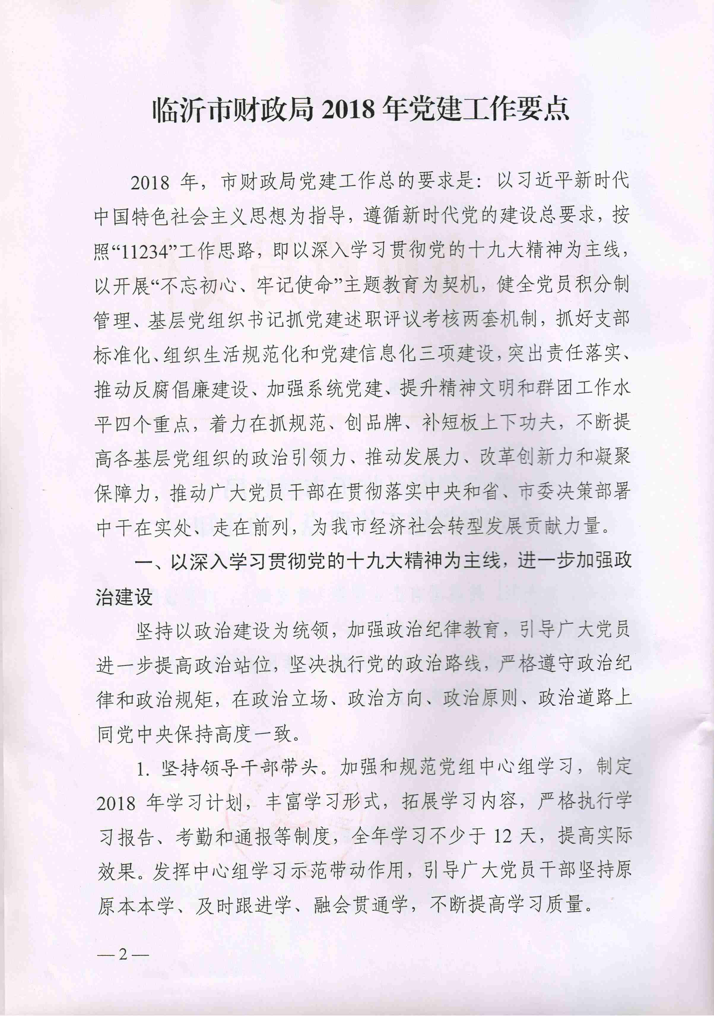 轉發關于印發《臨沂市財政局2018年黨建工作要點》的通知