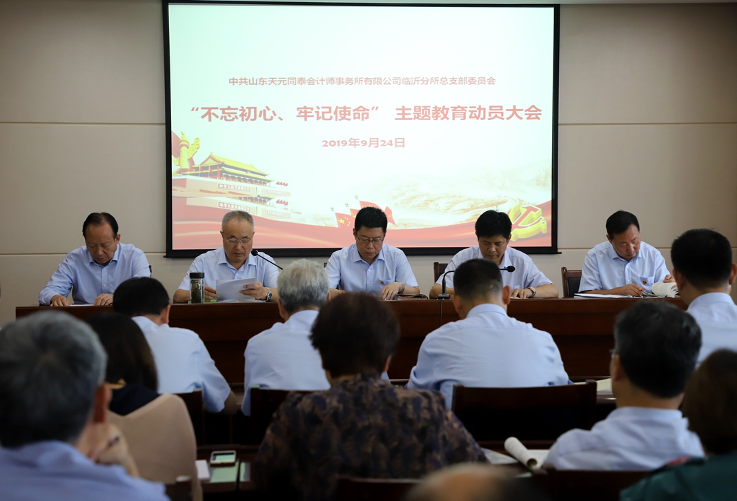 日前,中共山東天元同泰會計師事務所黨總支召開動員大會,在全所范圍內全面啟動“不忘初心、牢記使命”主題教育活動。會上傳達學習了注冊會計師行業黨委和市行業黨委的有關文件,公布了事務所 “不忘初心、牢記使命”主題教育活動實施方案,總支書記裴波苓作了主題教育工作部署,對開展各項活動進行了安排。同時,組織全體黨員進行第一次集中學習。 9月12日,事務所黨總支、審計評估支部和項目管理支部支部書記與黨務工作者參加了省注協行業黨委召開的主題教育動員部署視頻會議。在省注協行業黨委下發主題教育實施方案后,事務所黨總支立即召開了總支擴大會議進行學習,對如何開展主題教育活動進行了安排,研究并制訂了實施方案??傮w要求是以深入學習習近平新時代中國特色社會主義思想為根本任務,結合事務所實際深入貫徹“守初心、擔使命,找差距、抓落實”的總體要求,以事務所脫鉤改制20周年為契機,推動事務所黨員和從業人員全面系統學習貫徹習近平新時代中國特色社會主義思想,教育引導全體人員發揚革命傳統和優良作風,忠誠擔當,誠信執業,再創佳績。具體工作安排要結合本事務所和黨員實際,創造性的落實理論學習教育、調查研究、檢視問題、整改落實具體任務。