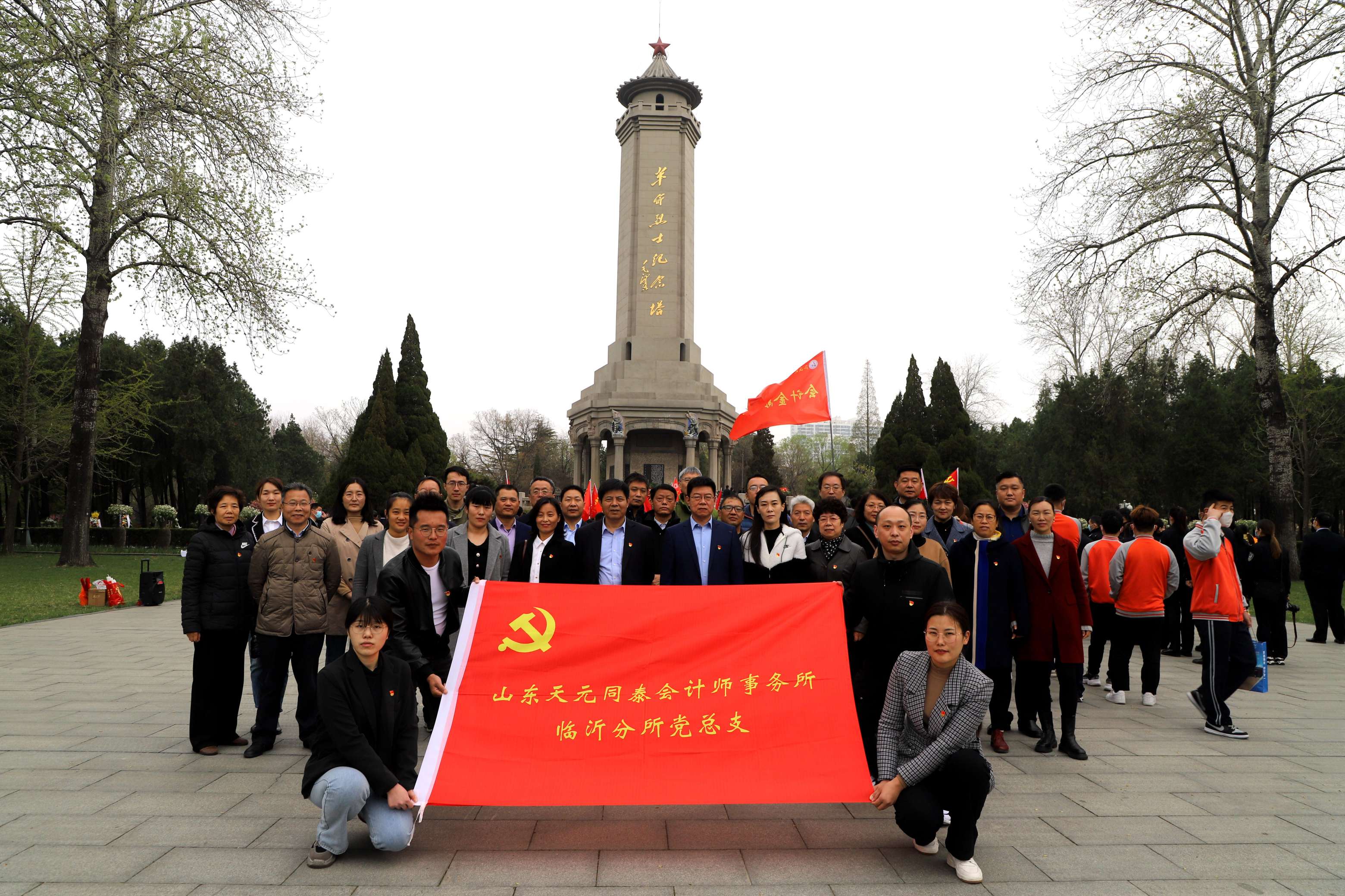 為深切緬懷革命先烈,傳承紅色基因,加強黨員黨性體驗和政治忠誠教育,2021年4月1日,山東天元同泰會計師事務所臨沂分所黨總支組織40余名黨員赴華東革命烈士陵園參加市注冊會計師行業黨委組織的“學黨史 憶英烈 守初心 當先鋒”清明黨性教育活動。 在革命烈士紀念塔前,黨員們集體向革命烈士紀念塔敬獻花籃,向烈士默哀,重溫入黨誓詞,深情緬懷革命先烈。隨后天元同泰黨總支組織黨員瞻仰和學習了“仰風承志亭”、丁秋生、常恩多、劉炎烈士墓和沂蒙革命紀念館。 一段段水與火的革命歷程,一個個動人心弦的先烈故事,一幅幅感人至深的紅色沂蒙畫卷,使大家思想受到了震撼,心靈得到了洗禮。黨員們深切感受到黨和人民軍隊與沂蒙人民鑄就的水乳交融、生死與共的歷程,為共產黨人浴血奮戰、老區人民破家支前的感人事跡而感動,更為新時代沂蒙人民開拓奮進、家鄉發生巨變而深深震撼。廣大黨員干部紛紛表示要繼承先烈遺志,傳承紅色基因,弘揚愛國精神,不忘初心和使命,凝聚奮進力量立足本職工作,充分發揮共產黨員先鋒模范作用,和全體同泰人一起用實際行動和優異的成績向建黨100周年獻禮。