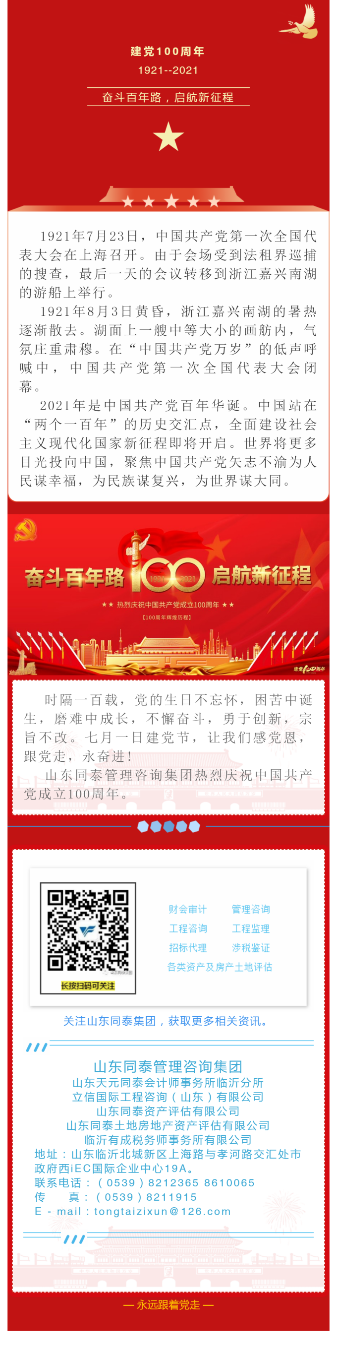 山東同泰管理咨詢集團熱烈慶祝中國共產黨成立100周年