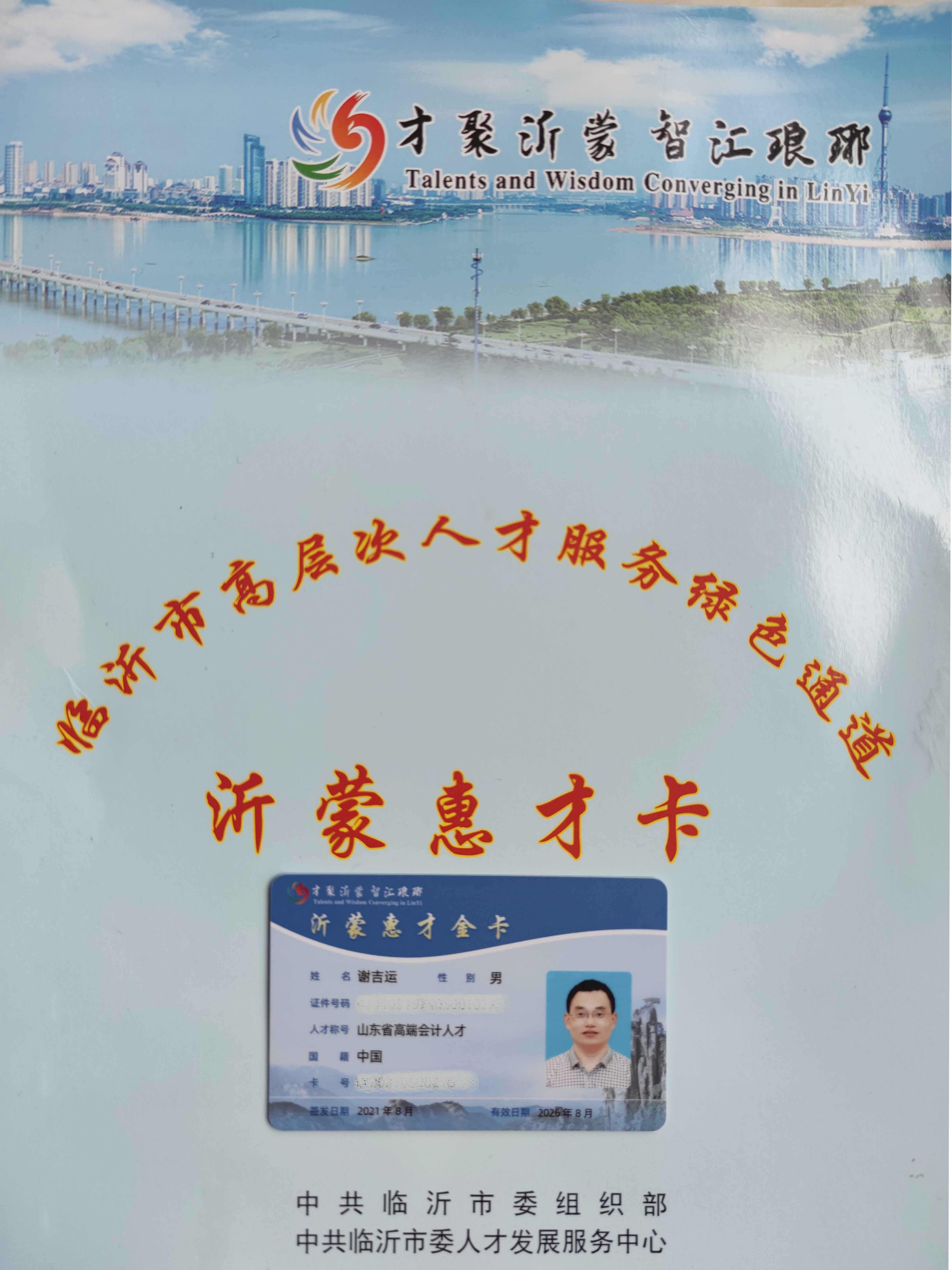 | 我單位職工謝吉運獲臨沂市高層次人才 “沂蒙惠才卡” |